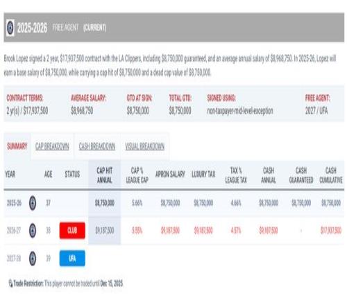大洛的合同是兩年約1800萬,本賽季年薪為875萬美元,下賽季918萬美元。
