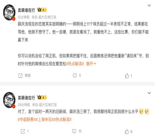 “賣萌誰在行”也對此予以證實:“薛慶浩現(xiàn)在的態(tài)度其實挺明確的——明明場上11個球員超過一半表現(xiàn)不正常,結(jié)果都在罵他,他就不想守了。他一自爆,就是在看戲了,就看他不上,這些比賽,你們能不能贏下來!”